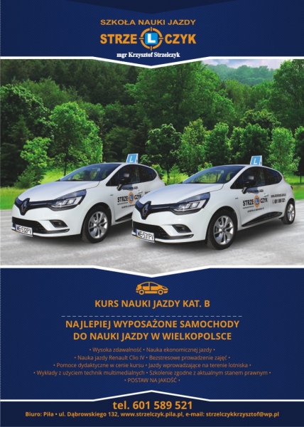 Szkoła Nauki Jazdy STRZELCZYK mgr Krzysztof Strzelczyk istnieje od 2004r. Kierownikiem i założycielem szkoły jest instruktor słynnej Kompanii Pojazdów Szkolnych nieistniejącego już Centrum Szkolenia Czołgowo-Samochodowego w Pile.