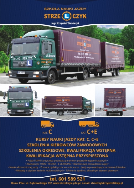 Szkoła Nauki Jazdy STRZELCZYK mgr Krzysztof Strzelczyk istnieje od 2004r. Kierownikiem i założycielem szkoły jest instruktor słynnej Kompanii Pojazdów Szkolnych nieistniejącego już Centrum Szkolenia Czołgowo-Samochodowego w Pile.
