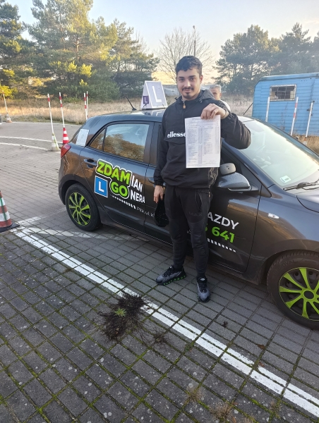 Polecam szkołe jazdy zdam go, oraz instruktora Damiana który zawsze chętnie udziela wszelkiej pomocy i podchodzi do kursanta indywidualnie. Atmosfera idealna, aby podejść ze spokojem do egzaminu. Ponadto nie trzeba martwić się o jazdy, bo instruktor zawsze znajduje pasujący termin.